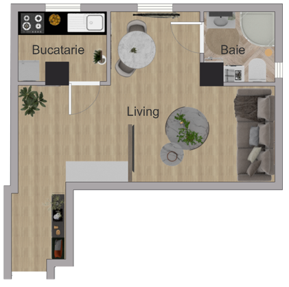 Apartamentul de la Demisol poate dispune și de o terasă exterioară.
